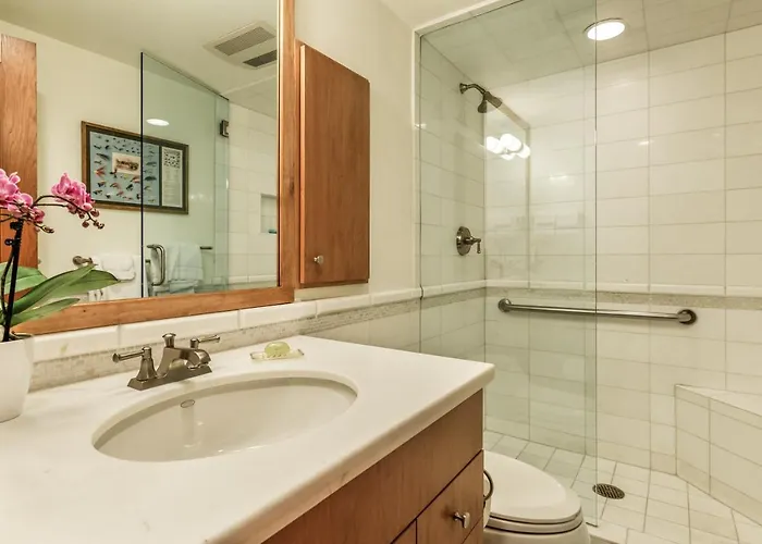 A walk-in shower and a separate toilet are offered in the Aspen property.
